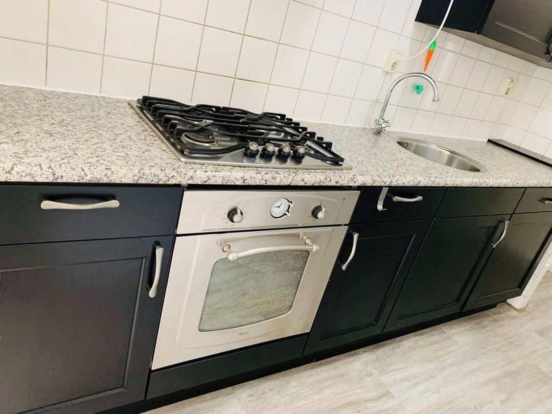 Via de woonkamer loopt u de open keuken in. Ruime keuken voorzien van een oven, gasfornuis en afzuigkap.