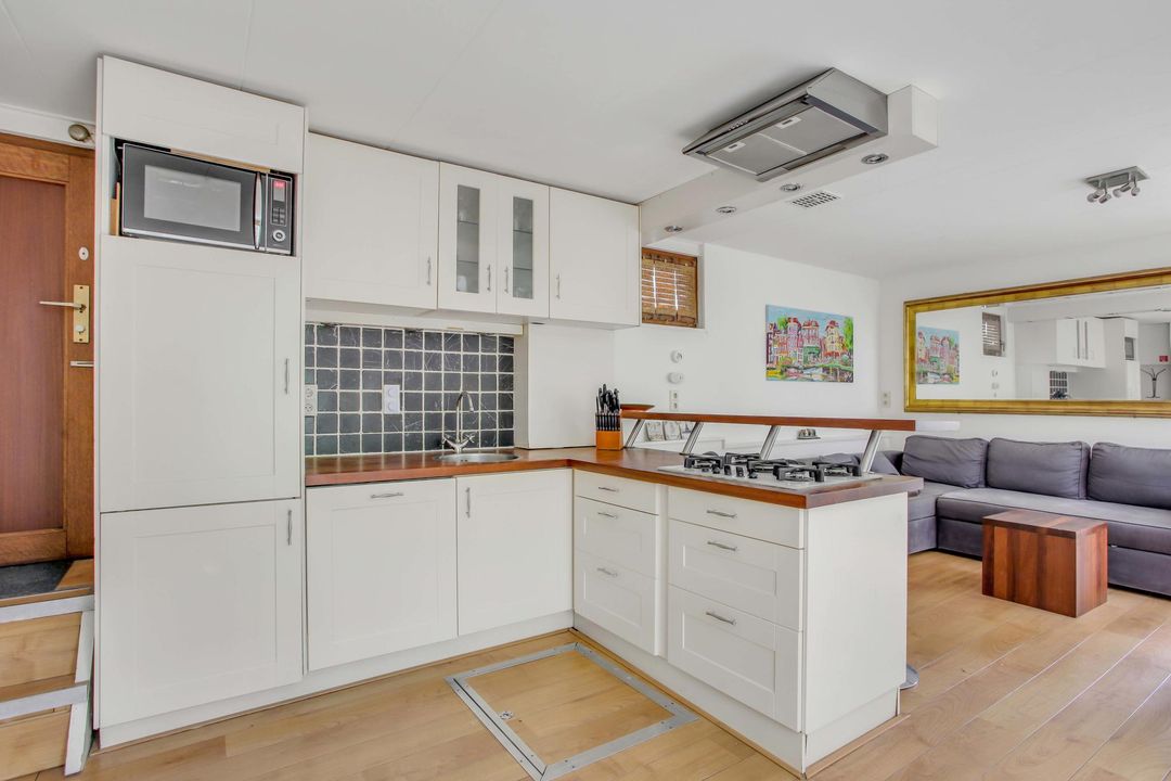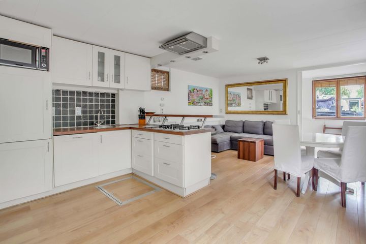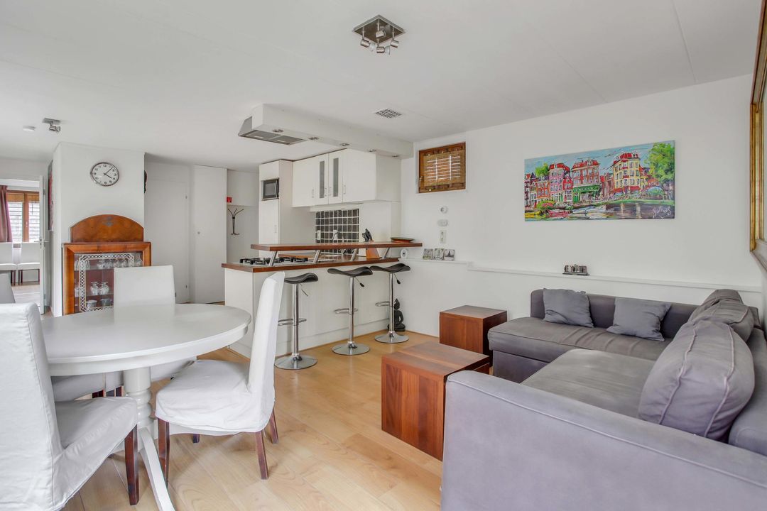 A beautiful three-room houseboat of 57 m². The detached houseboat has a lot of daylight and has an unobstructed view of a quiet part of the canal and the bridge to the Marnixstraat.