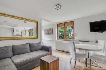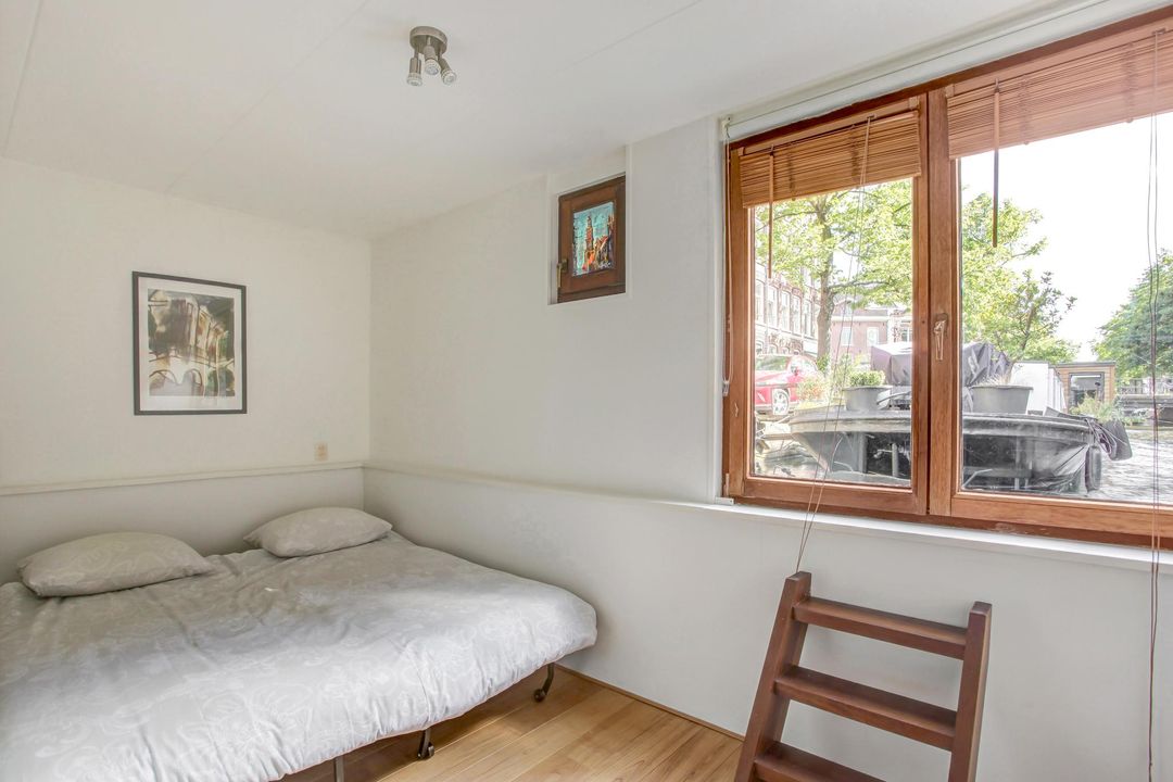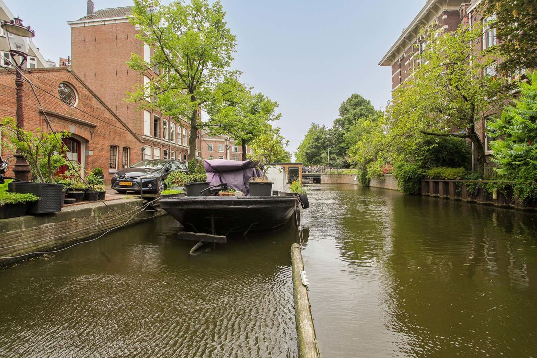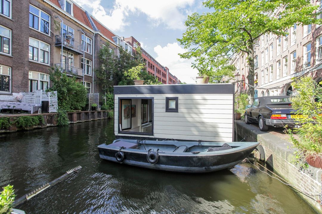 Een mooie driekamer woonark van 57 m². De vrijstaande woonark heeft veel daglicht en heeft vrij uitzicht op een rustig stukje van de gracht en de brug naar de Marnixstraat.