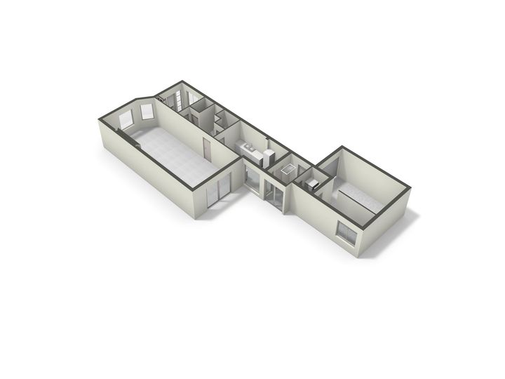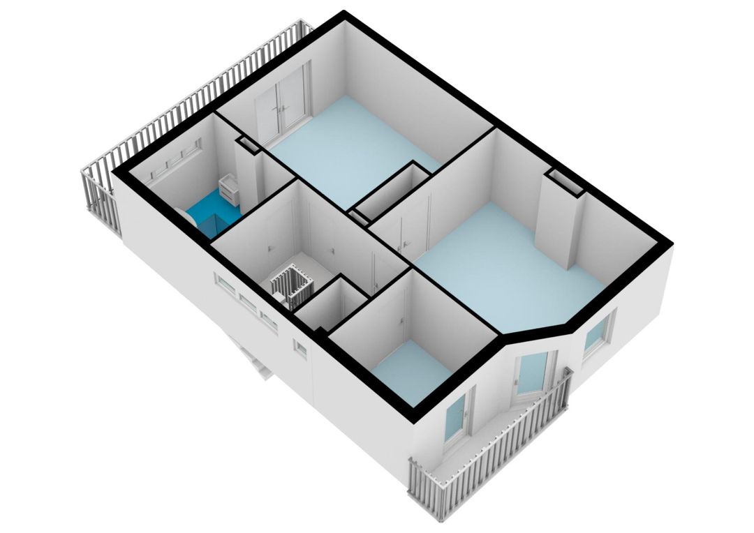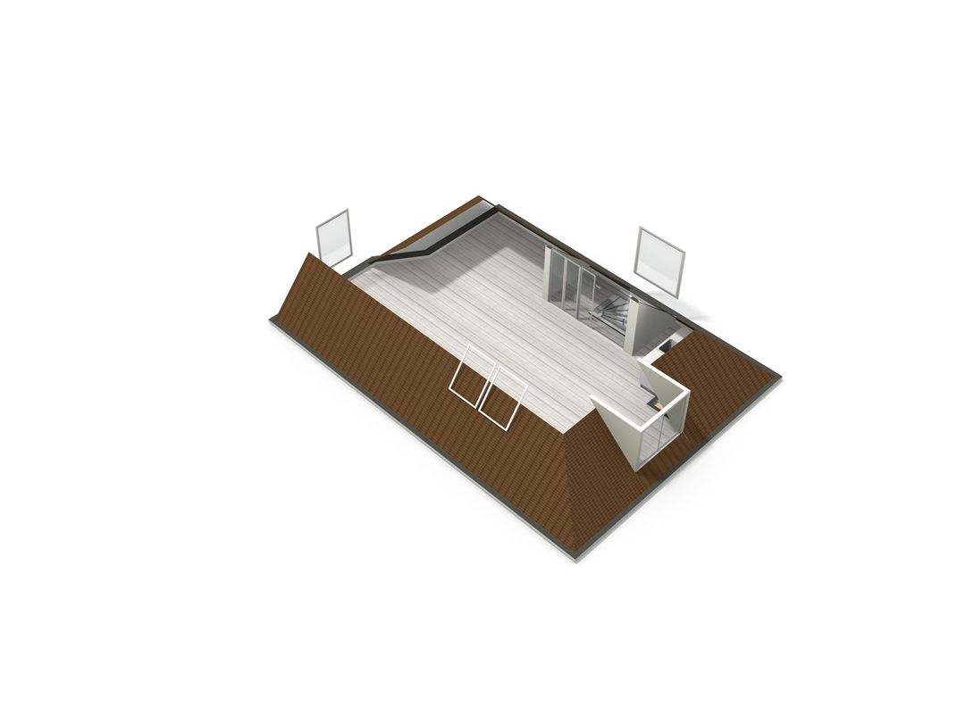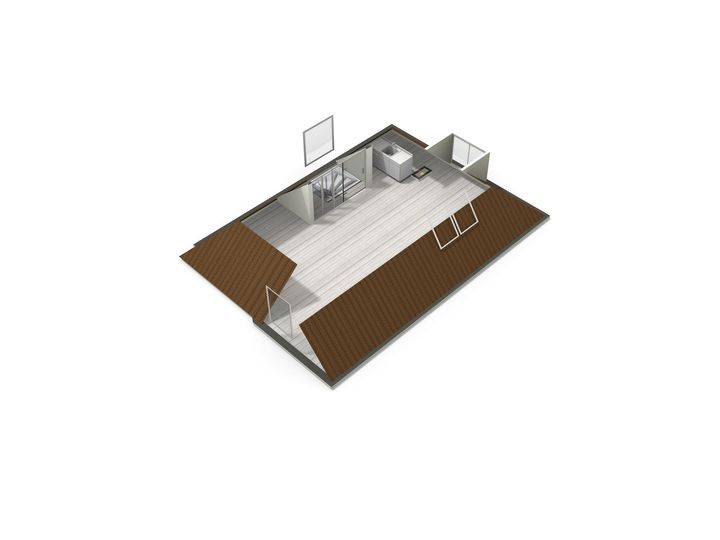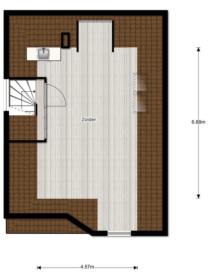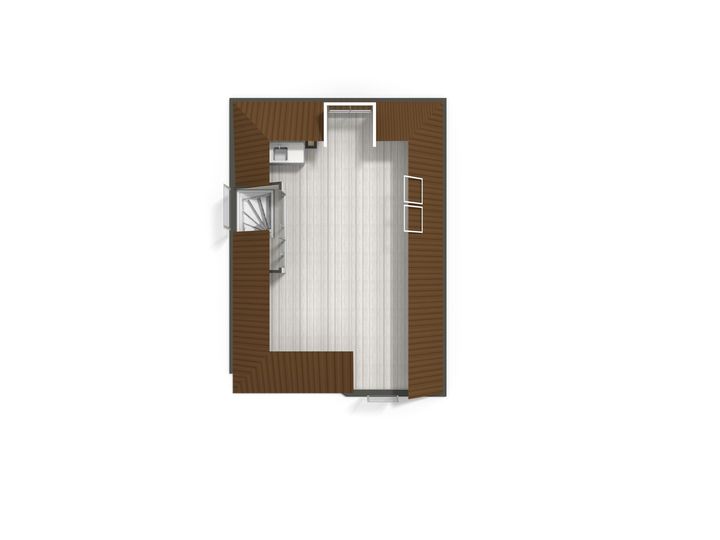 • De reeks lage kasten langs de muur/het dak aan de kant van de zolder tegenover de ingang (deze kunnen worden verwijderd als de huurders dat wensen).